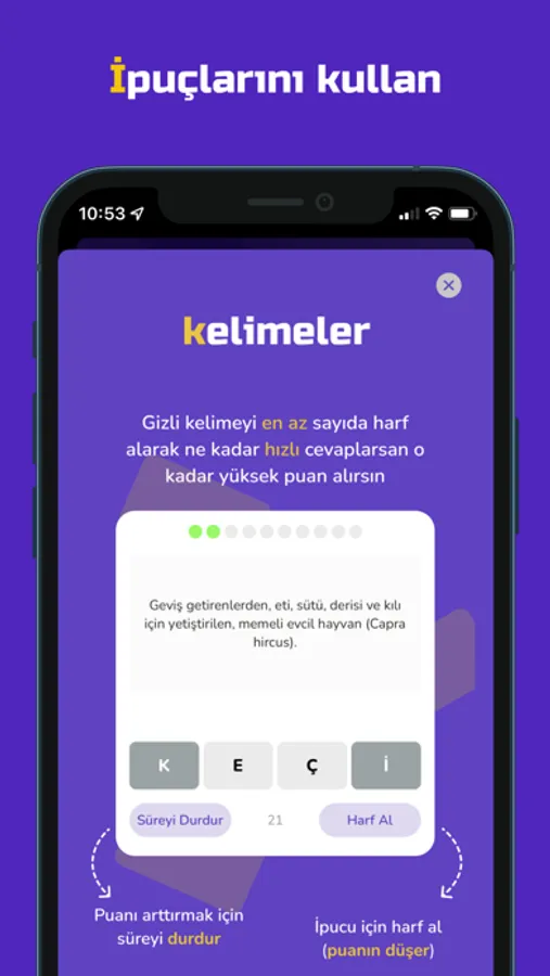 - Puanını yükseltmek için süreyi durdur. Fakat süre durduktan sonra yeni harf alamazsın.