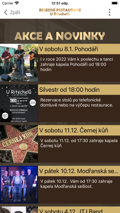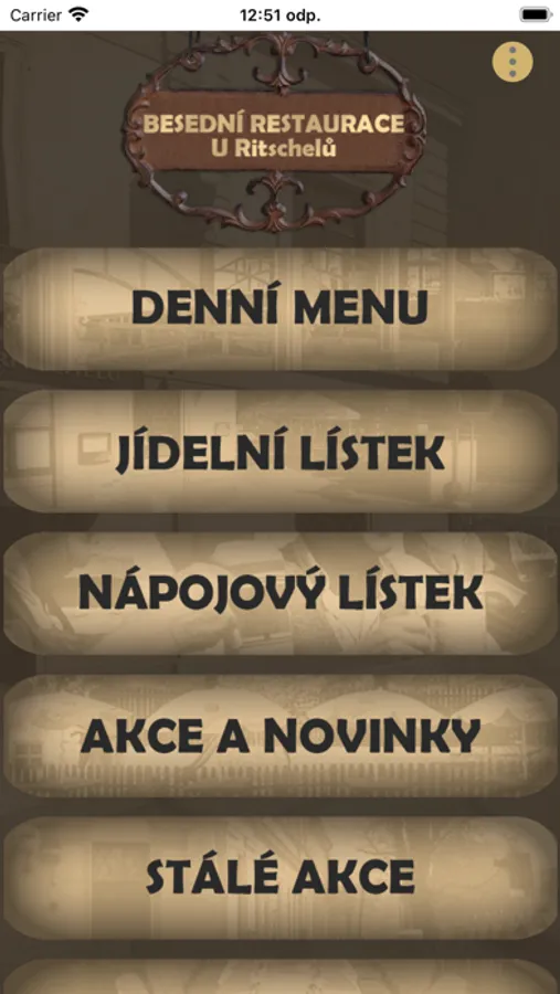 Aplikace Besední restaurace u Ritschelů, buďte s námi neustále v kontaktu a získejte informace o speciálních akcích a nabídkách. Dále je zde přítomna nabídka restaurace v podobě jídelního a nápojového lístku. Další součástí je i kontakt na podnik.