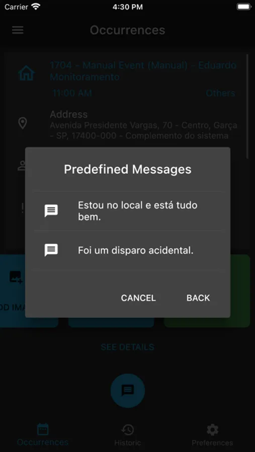 - Communicate to the Monitoring Center that has already arrived at the scene of the incident;
