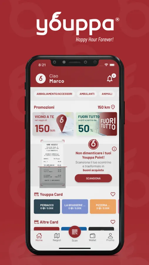Entra a far parte della community oggi stesso, e scoprirai ogni giorno promozioni esclusive a tempo e cashback in punti Youppa che potrai spendere nel tuo negozio di fiducia, in pochi tap!