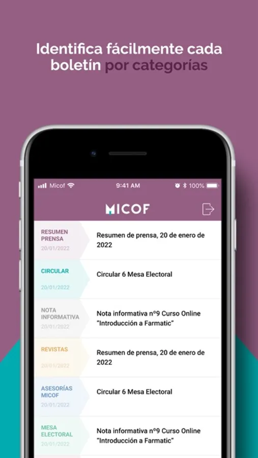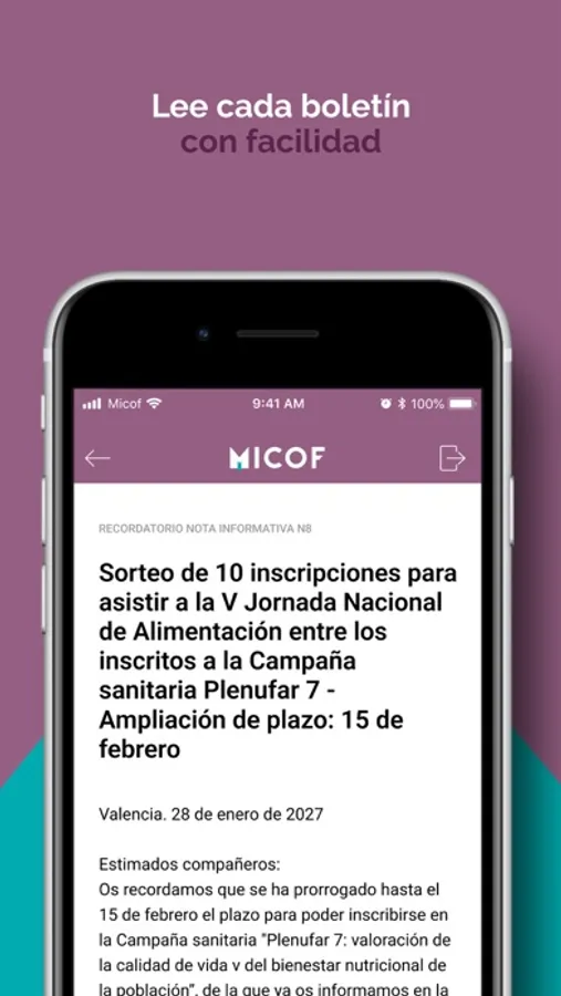Aplicación para colegiados del MICOF con acceso privado, para consultar mis boletines y recibir alertas con cada nuevo envío.