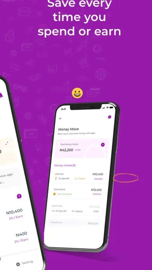 With myStash you can save a small percentage from your bank account every time you spend or earn money, from any bank account just by setting up money moves.