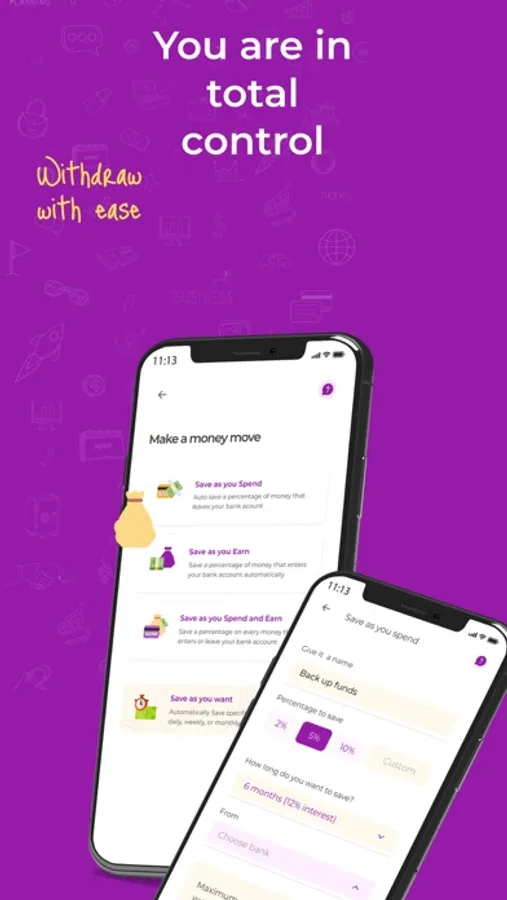 1. Sign up and create a money move. Specify what percentage of your spendings or earnings you would to save, and how long you would to save for.