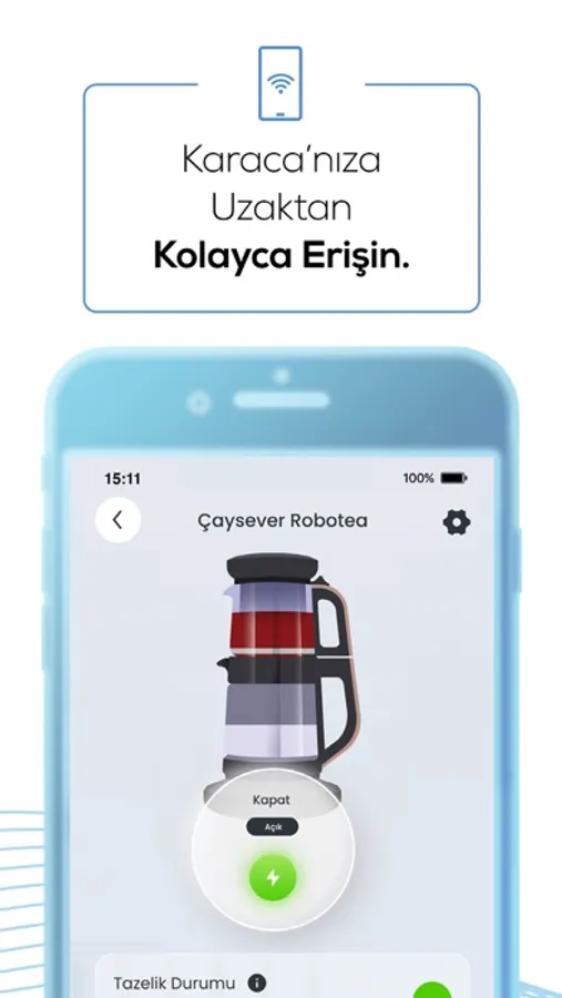 - Karaca akıllı cihazınıza uzaktan erişebilmenin kolaylığını keşfedebilir, cihazınızı dilediğiniz yerden yönetebilirsiniz.