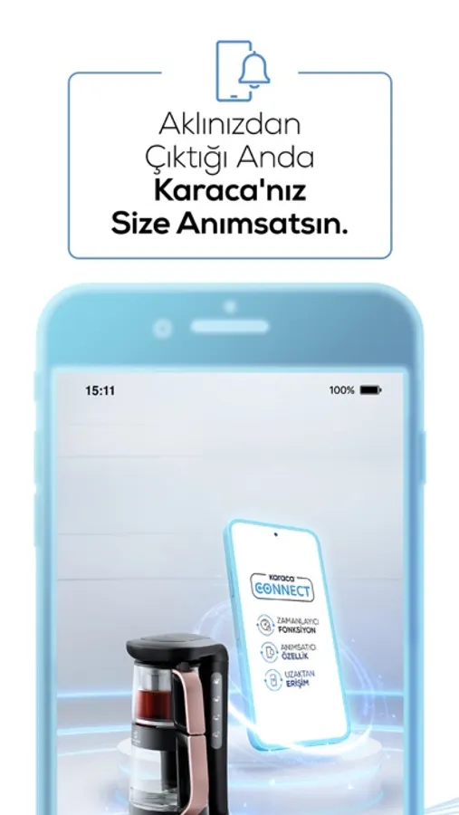 - Karaca Connect'in anımsatıcı özelliği ile gündelik hayatın koşuşturmasında olası unutkanlıkların önüne geçebilirsiniz.