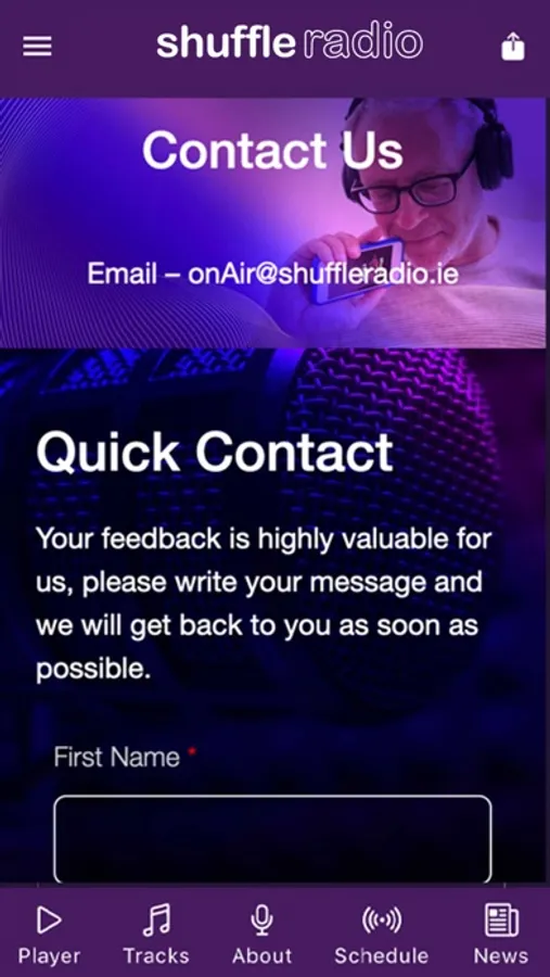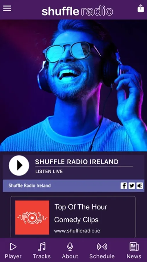 The Shuffle Radio App Player allows you to stream programs live to your smartphone and access other station information.