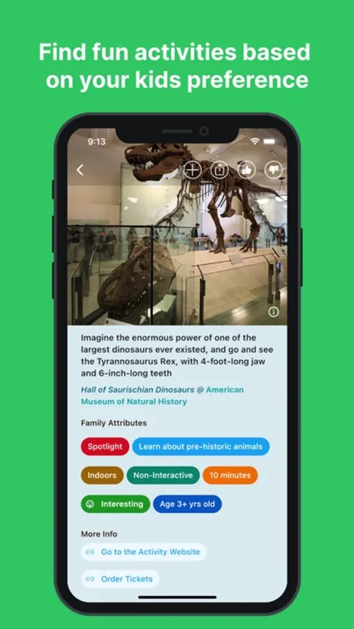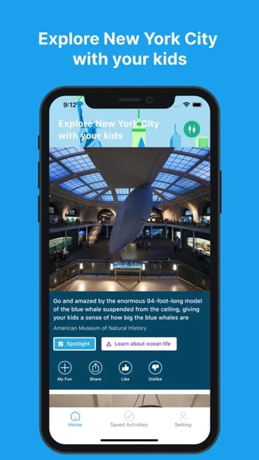 Parents can use our service to find fun activities in the city. Simply download the app and start scrolling through the many activities we recommend to parents. You can click on each activity to see more details, including family attributes such as recommended ages for the activity, the recommended spend time and the sentiment.