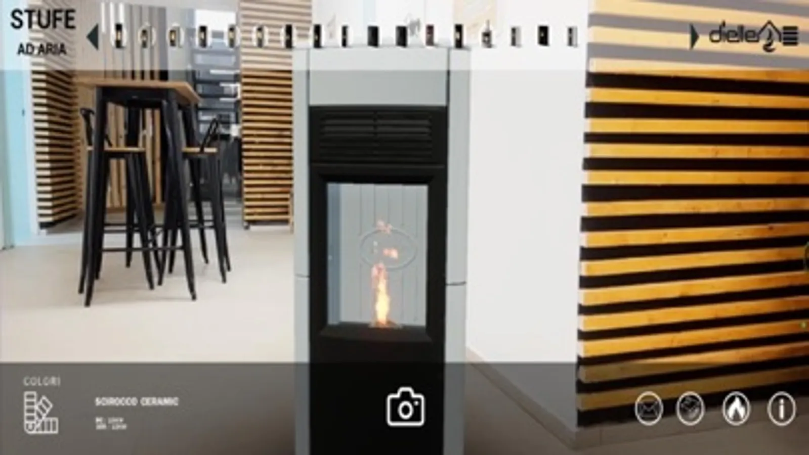 UP TO FIRE Dielle è l'applicazione Dielle che grazie alla tecnologia 3D e alla realtà aumentata tu permette di scegliere la stufa che preferisci, selezionare il colore che su adatta meglio ai tuoi gusti, e posizionarla direttamente nel tuo spazio domestico.