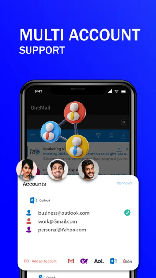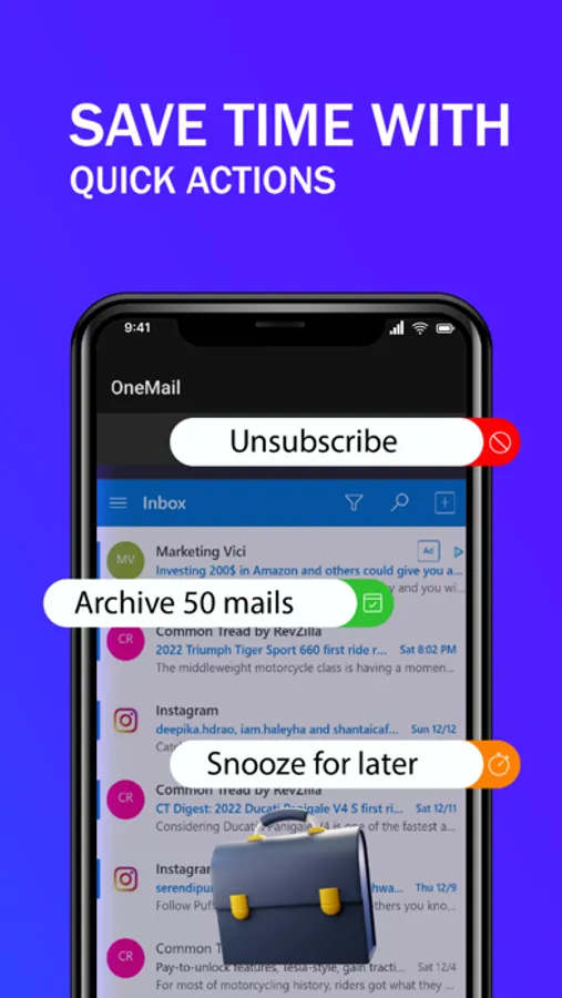 One eMail is a unified, all-in-one email app that lets you access and manage all your email accounts from different providers IN ONE PLACE! So why install tens of individual apps for each email account when you can access all of them with only one app.