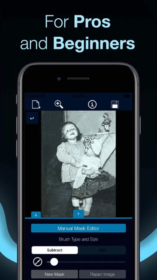 Damaged Photo Restore Suite provides you with all the loved features from the Damaged Photo Restore apps series, upgraded, improved and with additional tools!
