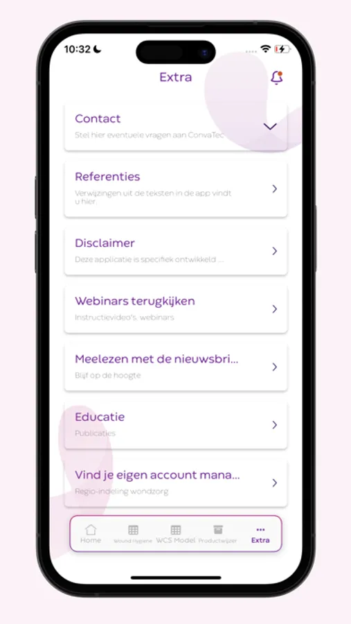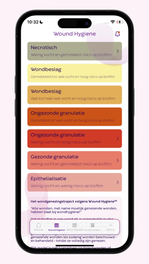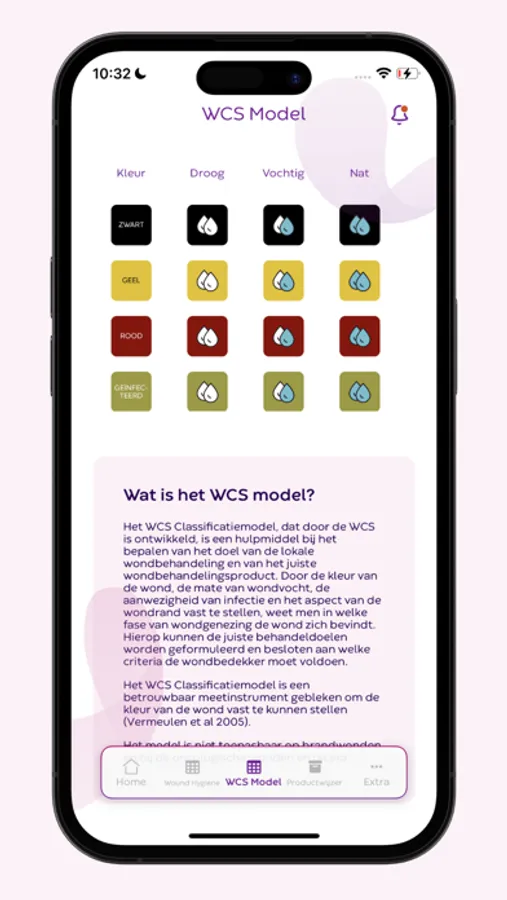 Naast de meest voorkomende indicaties, ulcus cruris, decubitus en skin tears, wordt er ook een advies gegeven op basis van het WCS model. Dit wetenschappelijk erkende wondmodel wordt veel gebruikt door wondexperts.