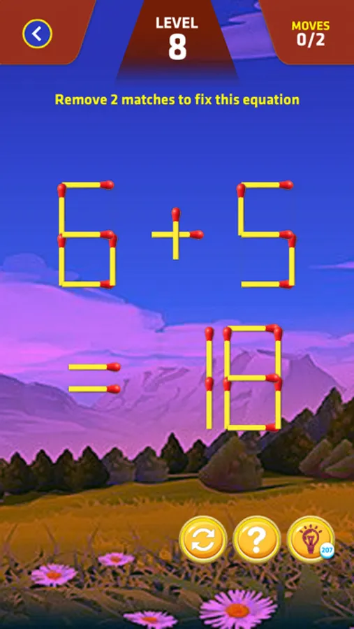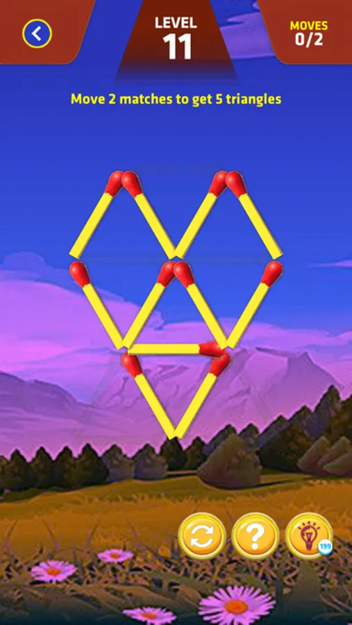 "Challenge your brain with Matchstick Puzzle, a captivating and addictive puzzle game that will test your problem-solving skills. In this unique game, you'll be presented with a series of matchstick arrangements, and your task is to move, remove, or rearrange the matchsticks to solve the puzzle.