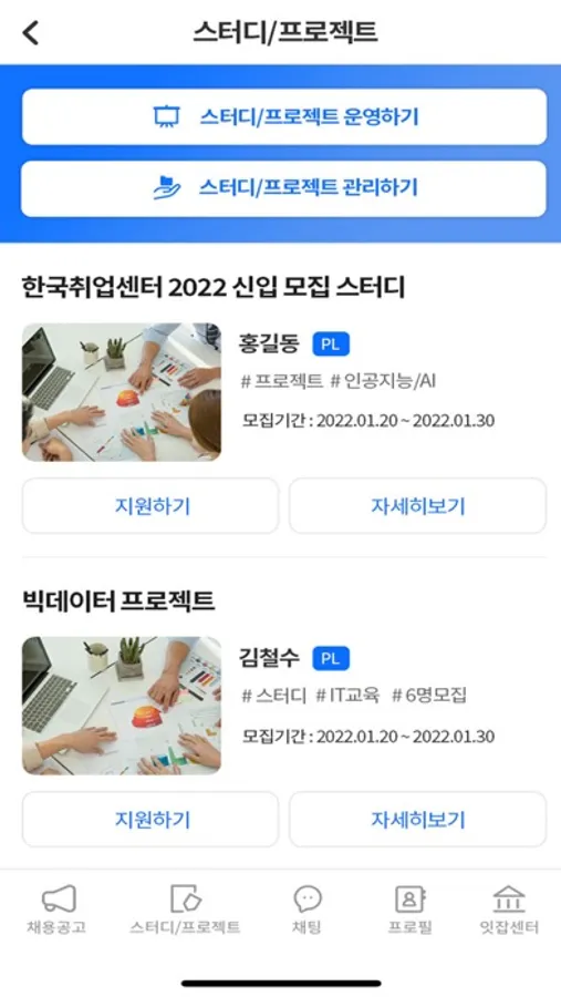 A. 프로젝트, 스터디 생성부터 모집, 관리까지 모두 잇잡에서 진행 가능!