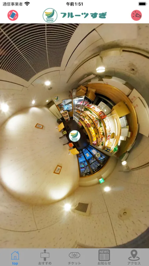 360度パノラマ画像でのお店の内観の閲覧や、お店へのアクセスなどの店舗情報の確認、またお得な情報などの最新のお知らせを確認することができるアプリケーションです。