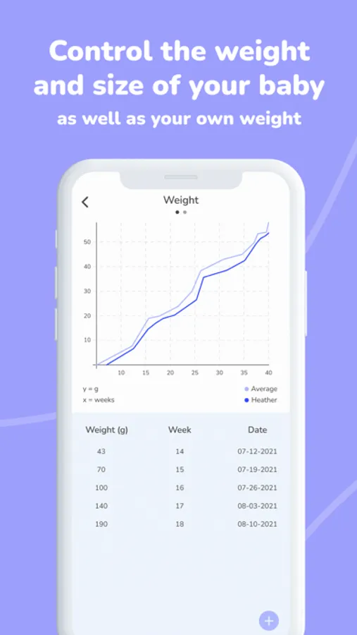Easily record your baby's weight and size progression during pregnancy and compare it visually with the normal average on a chart.