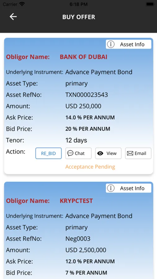 The first blockchain-powered RFQ auction platform for initiation and distribution of Trade Finance assets first launched in 2019 by ‘Fintech Innovations International DMCC' Dubai. We aim to eliminate banks’ current inefficient process-flow of Trade Finance asset exchange between financial institutions. Improves the efficiency and transparency of traditional price negotiation processes, increases global connectivity among institutions, makes trade finance products accessible to more institutions, establishes new business corridors and enhances our client profitability. The Trade Finance industry requires a digital platform as the first step towards organized and controlled transaction visibility, secured digital ask price and offer price exchange and facility to conclude deals real time online with added features of mutual communication and digital document exchange within the transaction flow.