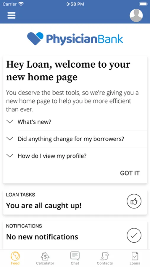 • Easily access contact information for your Physician Bank's Loan Officer and real estate agent and share this information with your family and friends.