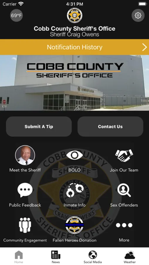 The Cobb County Sheriff’s Office, Ga mobile application is an interactive app developed to help improve communication and partnerships with area residents. The App allows residents to connect with the Cobb County Sheriff’s Office, Ga by submitting tips, providing public feedback and other interactive features, as well as providing the community the latest public safety news and emergency alerts. The app is another public outreach effort developed by the Cobb County Sheriff’s Office, Ga to engage and build deeper partnerships with county residents and visitors. This app is not intended to be used to report emergency situations. Please call 911 in an emergency.