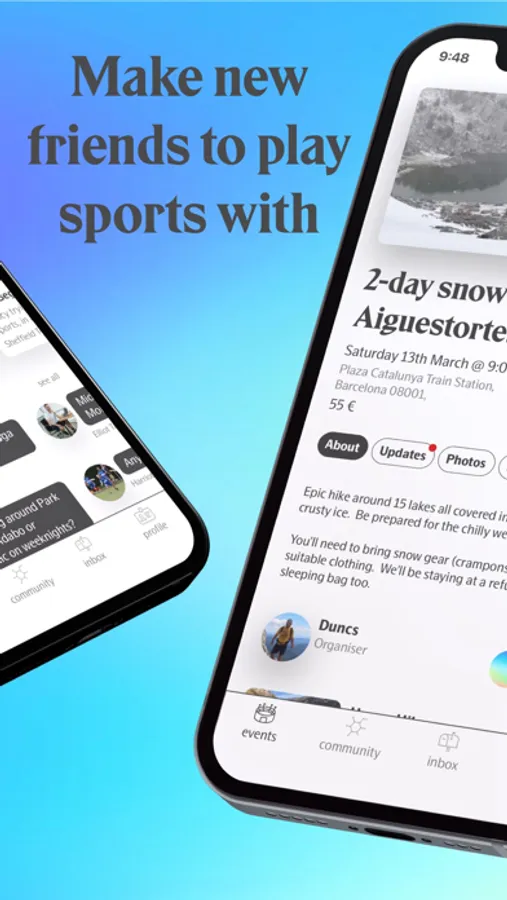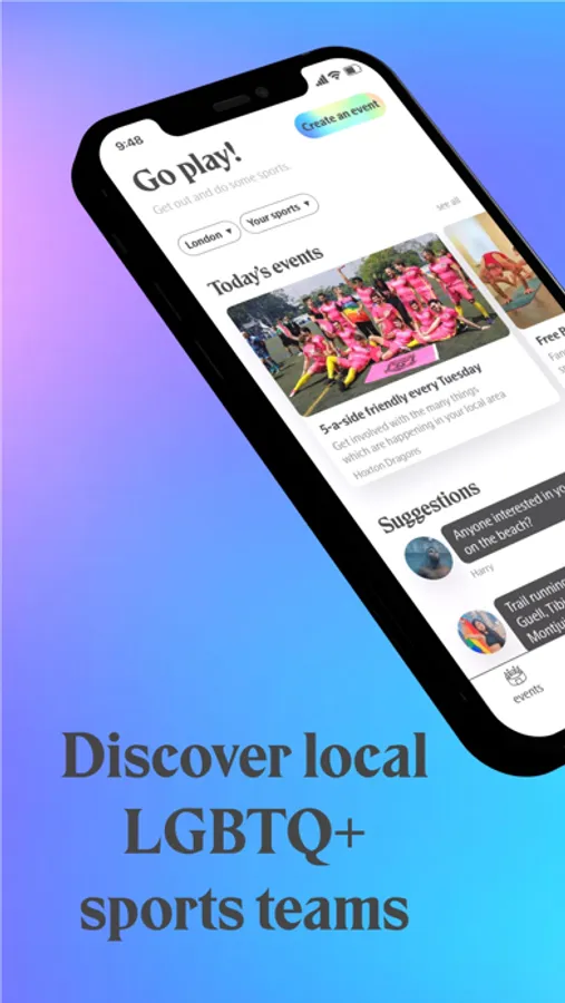 Discover sports teams and events in your local neighbourhood, find new gym buddies or sports partners, suggest things to do and make new friends.