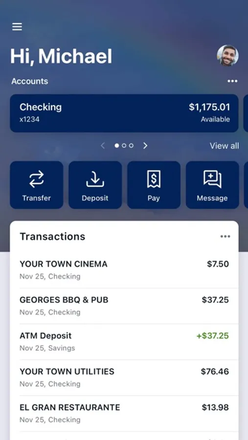 * Deposit checks in a snap by taking a picture of the front and back