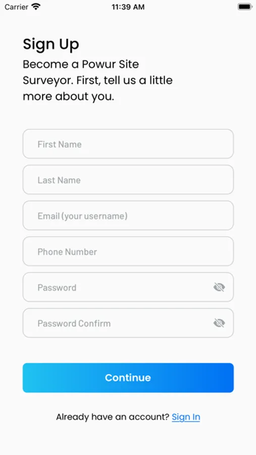 Mobile app for Powur-certified labor partners to conduct solar site surveys and installation activities. Supports onboarding of labor partners, step-by-step recording of photos and home attributes, and job assignment and payment.