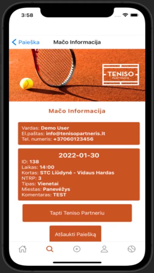 Teniso Partnerio paieškos sistema skirta visiems Lietuvos teniso entuziastams!