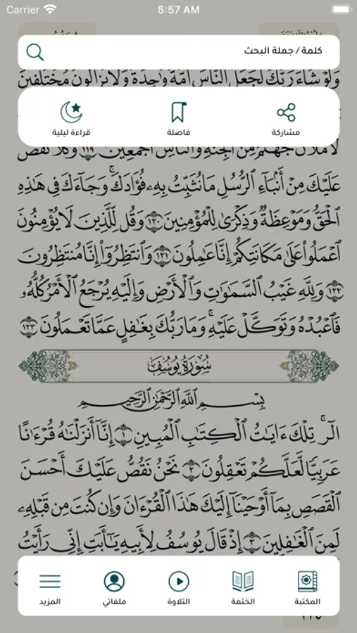 The wise Qur'an (Al Qur'an Al hakim), a contribution to the service of the Great Book of Allah , which contains all the basic requirements that a reader of the Qur’an needs; The reader is able to access several services: Selecting the chapter (Surah) or the page with ease, precisely searching the words and phrases of the Qur’an, quickly referring to the (Qur’anic Library), listening to recitation from the most famous reciters, writing notes and sharing verses through social media.