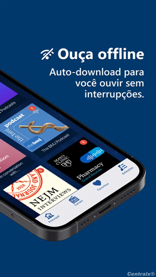Enquanto você ouve, o aplicativo faz o download dos episódios desejados para você ouvir mesmo quando não houver conexão disponível.