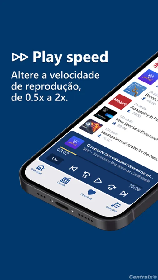 - Altere a velocidade: ouça episódios em velocidades de 0.5x a 2x