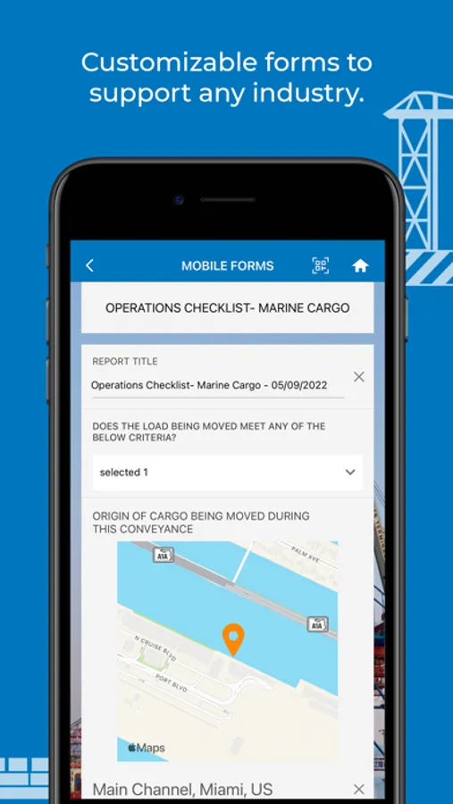 MOBILE FORMS WITH QR CODE ACCESS – Replace paper-based forms with digital forms that can be completed by anyone with the app or via QR code access. Leverage our pre-populated form library or build new based on your existing paper forms. Data is captured digitally, directly from the user, reducing errors and providing faster access to information. Mobile forms can cover a wide variety of topics, warehouse assessments, carrier scorecards, heavy lift and project cargo management, and cargo theft management.