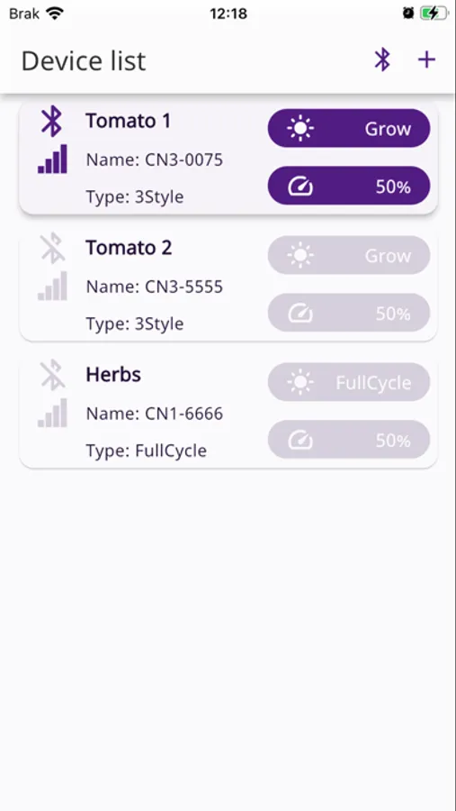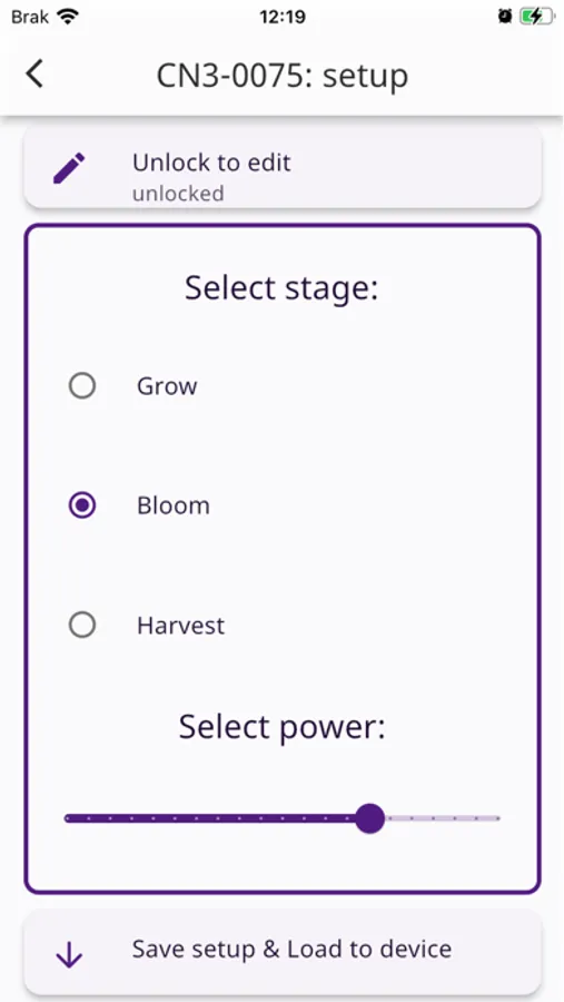 This mobile allows users to control bilberry light fixtures for plant cultivations. It is offered for private as well as professional growers.