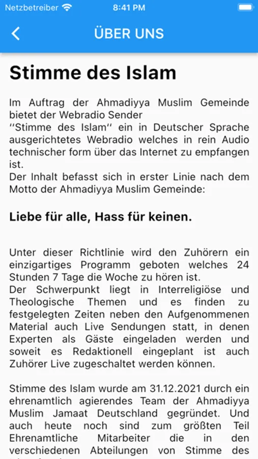 Im Auftrag der Ahmadiyya Muslim Gemeinde bietet der Webradio Sender