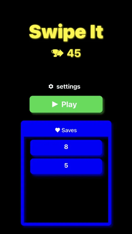 'Swipe It' is an endless game of reacting to the various commands. If you fail to follow the instructions, GAME OVER! This simple game will have anybody of any age screaming with joy.