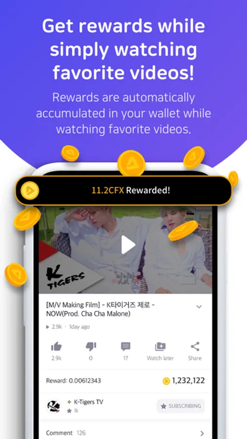 ※ Chainflix share rewards to all users through CFX rewards. (You can convert CFX rewards to CFXT coin to trade on the crypto exchanges)