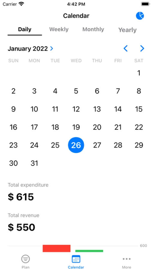 - Provides daily/weekly/monthly/yearly revenue/expenditure history