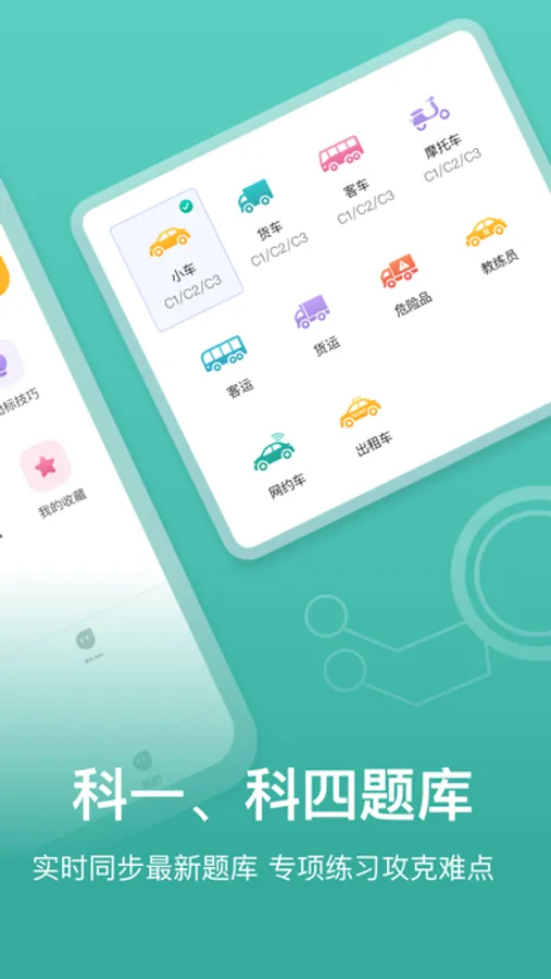 1.全新官方权威题库同步更新,支持多车型专用试题练习;