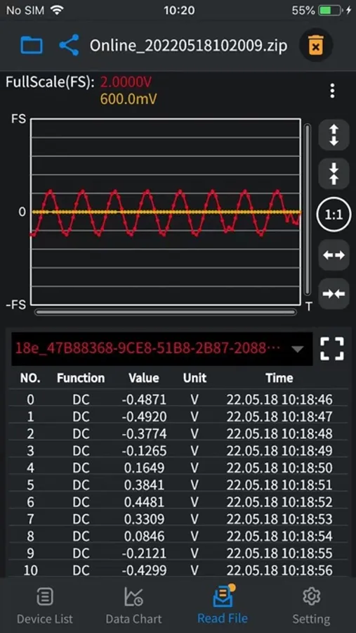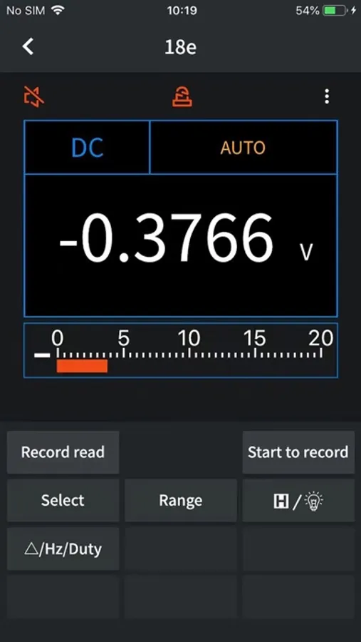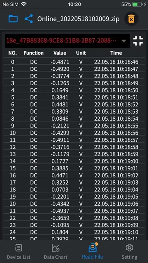 you can use iOS device APP to send a command, the multimeter will start recording the measurements. After receiving the command, the connection will be disconnected automatically. The multimeter will record the measuring data in its own memory. After completion of the record, use iOS APP to reconnect the multimeter, and then you can read the measuring data into the iOS device as a CSV file. You can use this function to record for a long time without staff on duty, while reducing Bluetooth consumption to conserve the battery power of the multimeter.