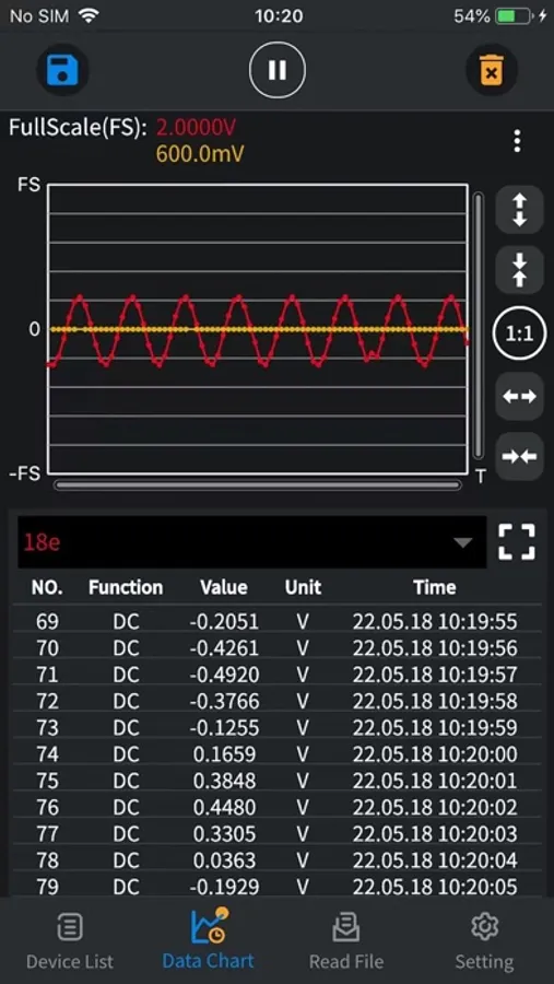 read the real-time measurement data of multimeter by low power consumption Bluetooth protocol. After recoding, drawing, analyzing the data, specific data could be saved and loaded for checking convenience.