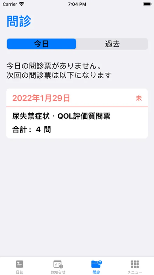 アプリやスマートウォッチ上にて問診や日誌などのQOL調査項目に回答できます