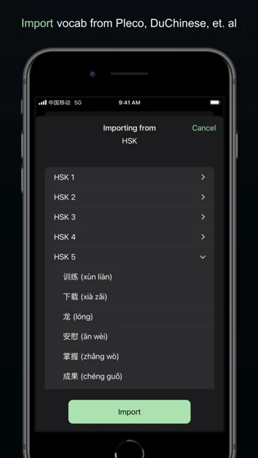 YiYa is a SRS flashcard app that helps improve your Chinese pronunciation by giving you a score based on how well you speak your vocab. YiYa is ideal for those who find it easier to build muscle memory than memorize tones. Start with the pre-made word list, or import your own!