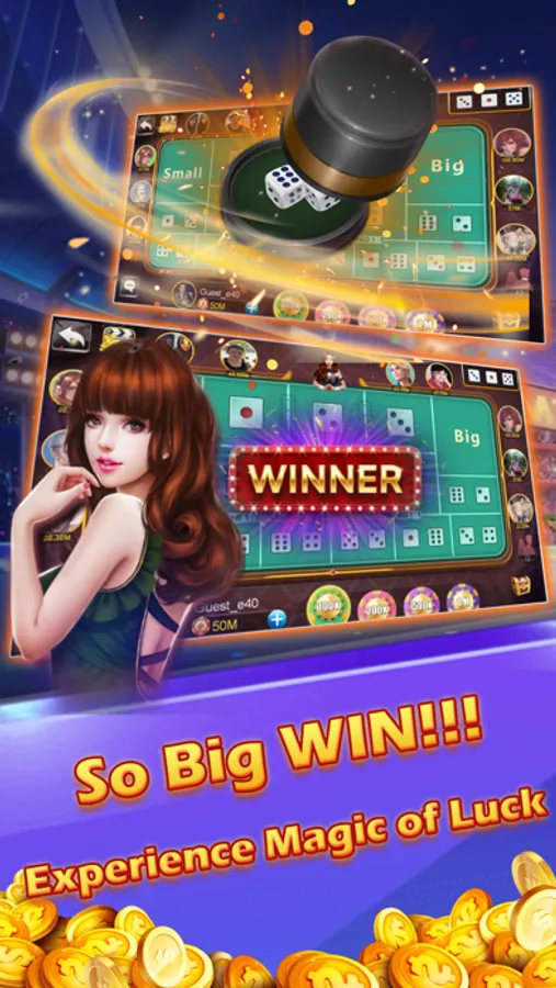 Guess the dice that is shaken, and win the chips that you put! Or go BIG by guessing the number or combination! How lucky you every day! Play it safe knowing all the ways to play are in your hands.