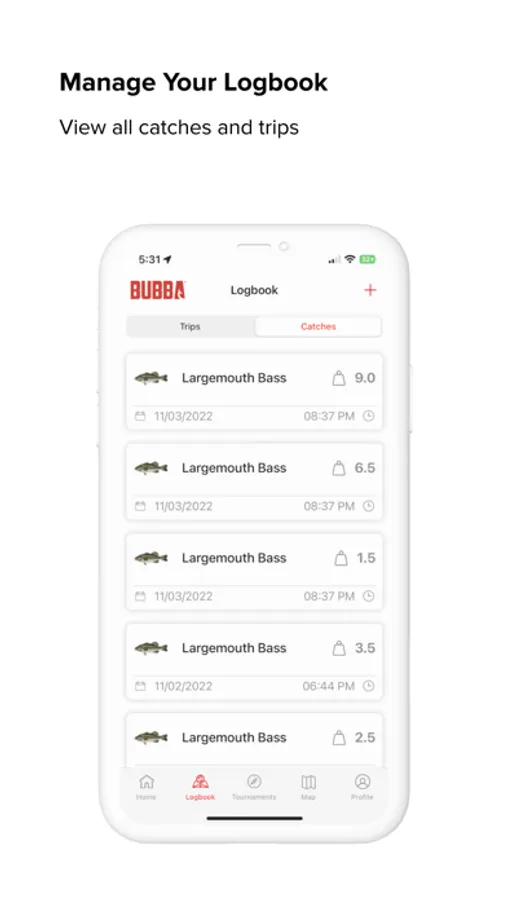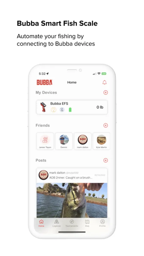 Experience fishing like never before with BUBBA - the ultimate freshwater and saltwater fishing app. Connect to our smart fish scale and effortlessly log every catch, every trip, and every waypoint. BUBBA has everything you need to take your fishing adventures to the next level: