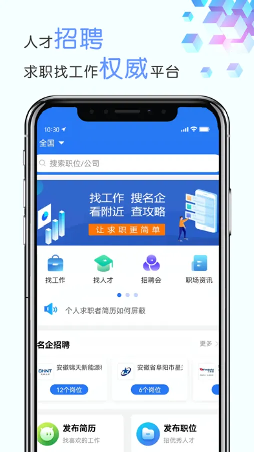 阜阳人才网是一款阜阳本土的招聘类手机APP,阜阳人才网成立于2007年,经过多年的发展已经成为阜阳本地网络招聘市场的领先者。平台开启全新招聘模式,每日更新招聘信息,海量热门的高薪职位供您选择,招聘求职就上阜阳人才网。