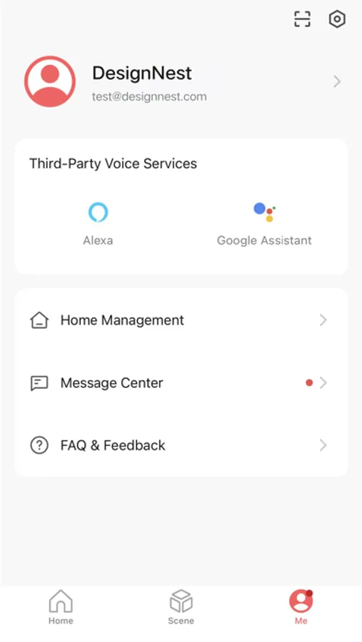 2. Set various scenarios, such as getting home, leaving home, getting up, resting, etc. Simple one-click control of all DesignNest SmartHome products.