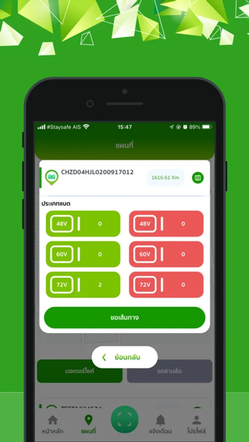 มีสถานีให้บริการสลับแบตเตอรี่- เช่าแบตเตอรี่ สำหรับรถมอเตอร์ไซค์ไฟฟ้า โดยค้นหาชื่อสถานีในแอปพลิเคชันได้ทันที