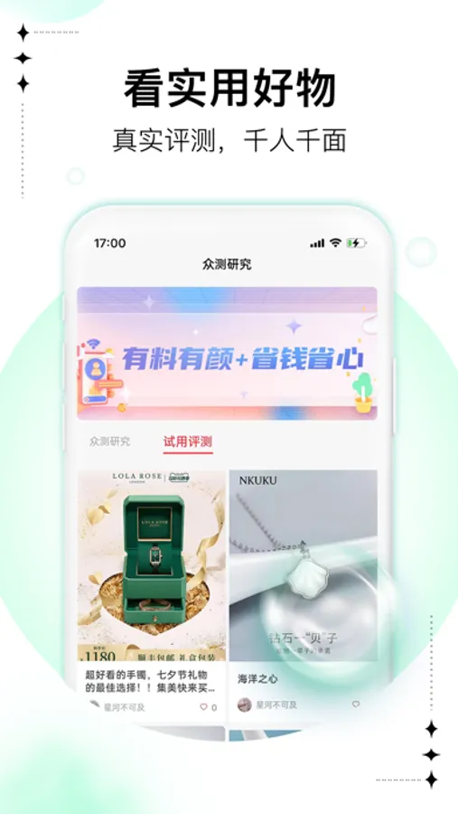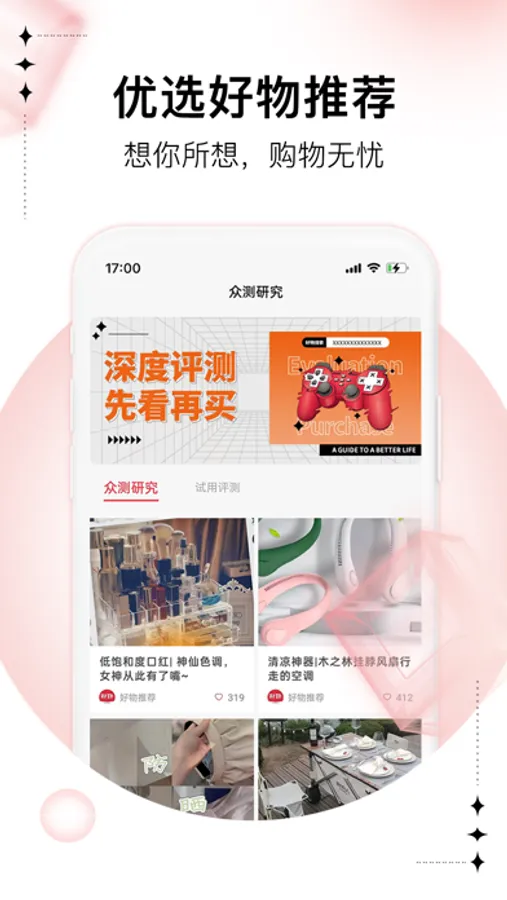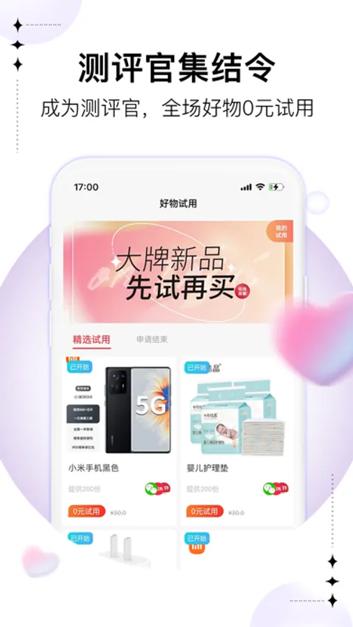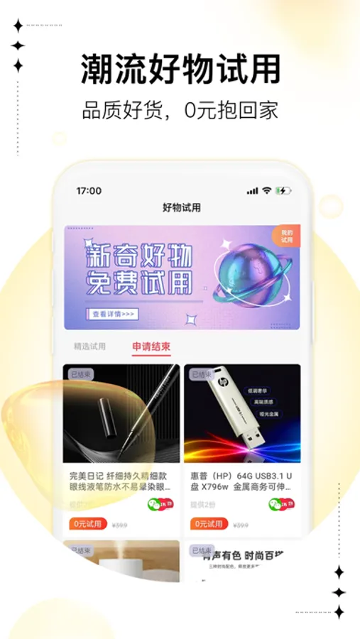 【好物试用】抢先试用各个潮流大牌新品,“先体验,后购买”的试用模式,以及身边人的真实体验分享,让你可以更轻松的找到适合自己的心仪好物;