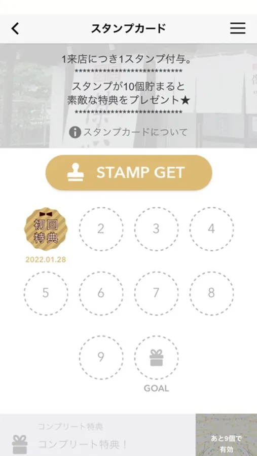 アプリ内にスタンプが貯められます。
