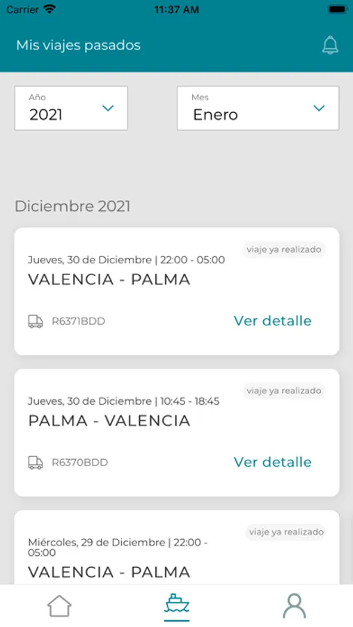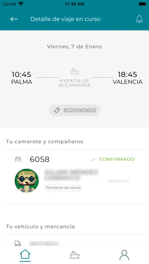 En cada viaje se podrá revisar qué compañeros se han asignado en el camarote a compartir con el usuario siempre y cuando se hayan registrado en la aplicación.