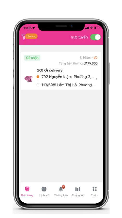 Giao diện trực quan dễ sử dụng cùng các tính năng cơ bản hỗ trợ tài xế nhận đơn và quản lý đơn hàng tốt hơn, theo dõi doanh thu cho các đơn đã hoàn thành và nhận thông báo nhanh chóng từ đối tác ngay trên ứng dụng.