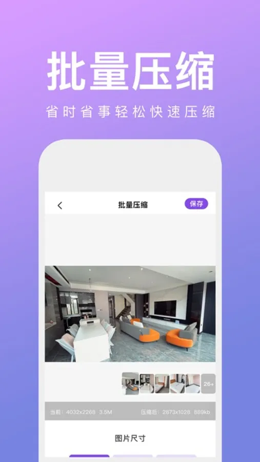 【批量压缩】 图片大小和尺寸一键压缩,快速导出,释放内存空间;